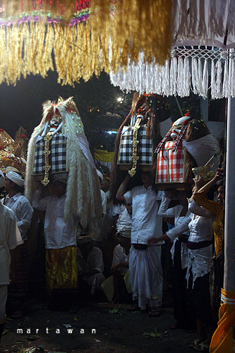 Salah satu barong nampak datang ke pura untuk mengikuti acara ngubeng.